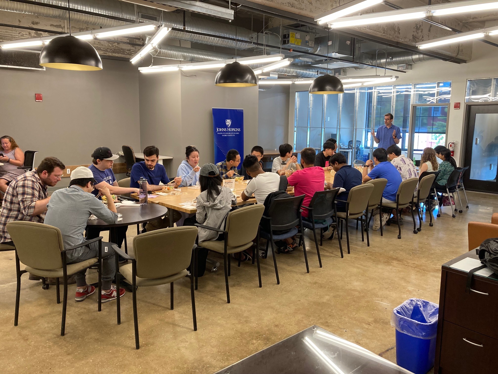 The Ralph O’Connor Sustainable Energy Institute (ROSEI) recently hosted a large contingent of graduate students at R House for lunch, as well as an open discussion and Q&A about how ROSEI can aid graduate students in their research and networking efforts.